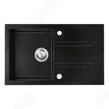 FERRO Crna mat granitna sudopera sa oceđivačem, Sifon FI115 mm sa sajlom
