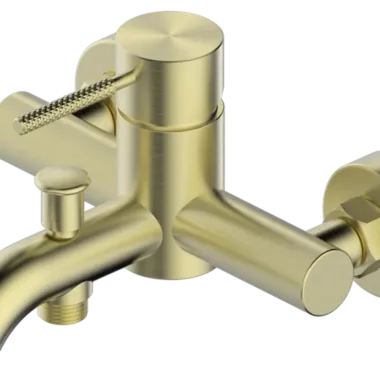 Baterija za kadu COPEN NOOK u elegantnoj boji brušenog zlata, sa mešačem Ø35 i Neoperl perlatorom sa limitiranim protokom od 9 L/min, štedi vodu i smanjuje troškove.