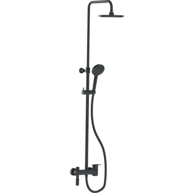 Copen Nook okrugli tuš set u mat crna uključuje bateriju, šipku usponskog tuša, tuš ružu, tuš ručicu i crevo, savršeno kombinovane za moderan izgled i dugotrajnu upotrebu.