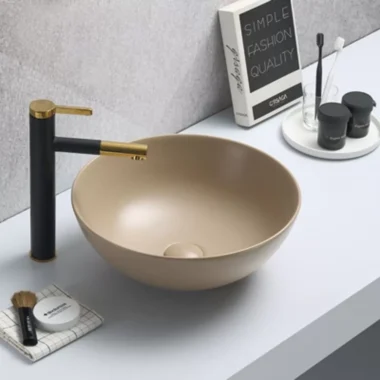Lavabo nadgradni MINOTTI415x155 mat bež je elegantan okrugli lavabo brenda Minotti, izrađen od kvalitetne sanitarna keramike. Idealan je za savremena kupatila zbog modernog dizajna i lake ugradnje.