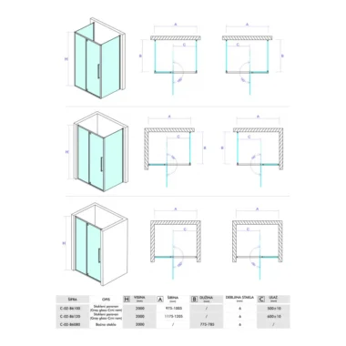 COPEN ABSOLUT Bočno staklo BLACK 800×2000 dark staklo 6mm crni mat ram
