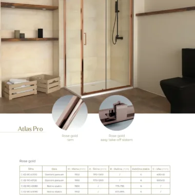 COPEN ATLAS Bočno staklo PRO 800×1950 rose gold, staklo 6mm providno