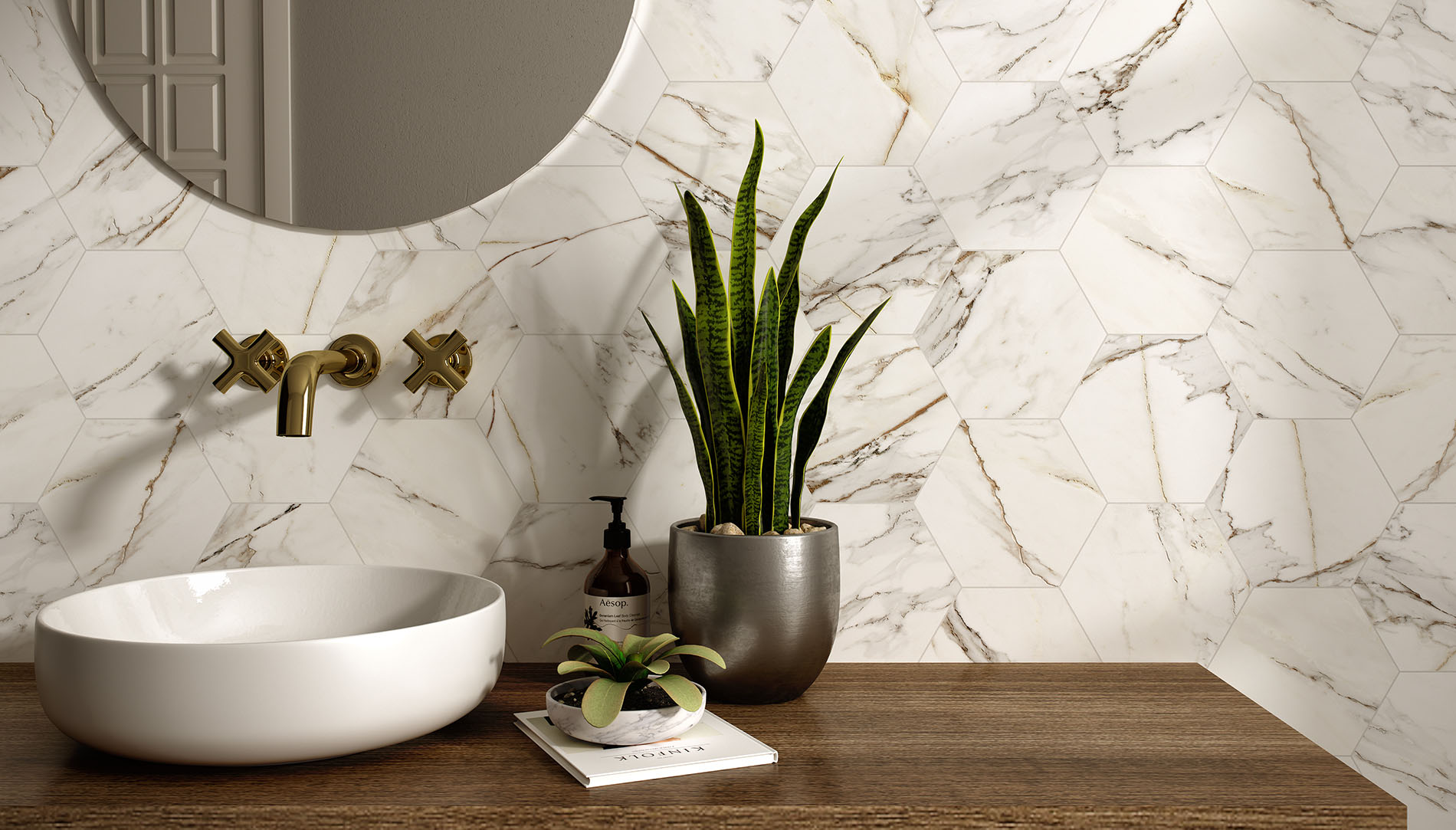 Calacatta Gold Hex 20X24 je Granitna keramička pločica, španskog proizvođača José Oset y Cía. Serija: Calacatta 20X24. Boja: Bela. Tekstura: Mermer, Hexagon. Završna obrada: Mat. Plocica je otporna na mraz, pogodna za eksterijer. EAN: 8429549490363. Fabricka šifra: 8429549490363.