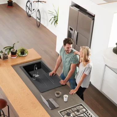 Granitna sudopera modernog dizajna, otporna na ogrebotine, visoke temperature i hemikalije. Idealan spoj estetike i funkcionalnosti za svaku kuhinju.