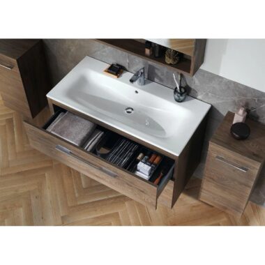 Geberit Selnova Square set ugradni umivaonik, tanak rub, sa ormarićem, dve fioke 100×65,2×50,2 cm, Orah – Fabricka šifra: 501.246.00.1 je elegantno i funkcionalno rešenje za moderno kupatilo. Ormaric je izraden od visokokvalitetnog fina pečena glina / troslojna iverica visoke gustine, laminiranog zaštitnom folijom. Boja: Orah, sa unikatnom završnom obradom. Ugradnja: FSC™ C134279 sertifikovan, uska ivica, otporno na vlagu, sa dve fioke sa samouvlačenjem – jednostavna montaža na zid. Širina ormarica je 100 cm. Proizvedeno u Švajcarska, Proizvodac Geberit, serija Selnova Square.