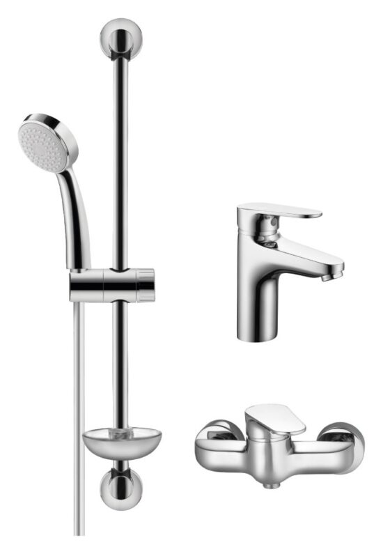 Herz Set Baterija za lavabo povišena, baterija za tuš kabinu i tuš set sa kliznom šipkom