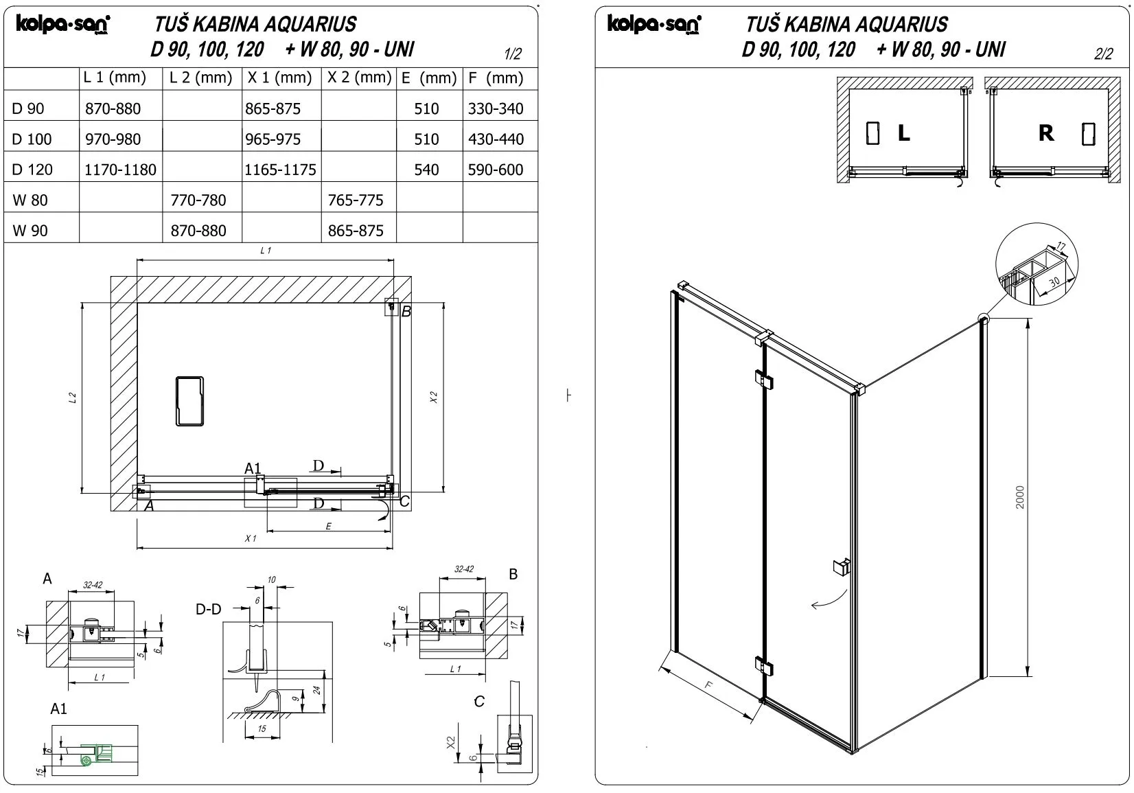 Kolpa San Deo Tuš Kabine D 90-UNI B/1 AQUARIUS
