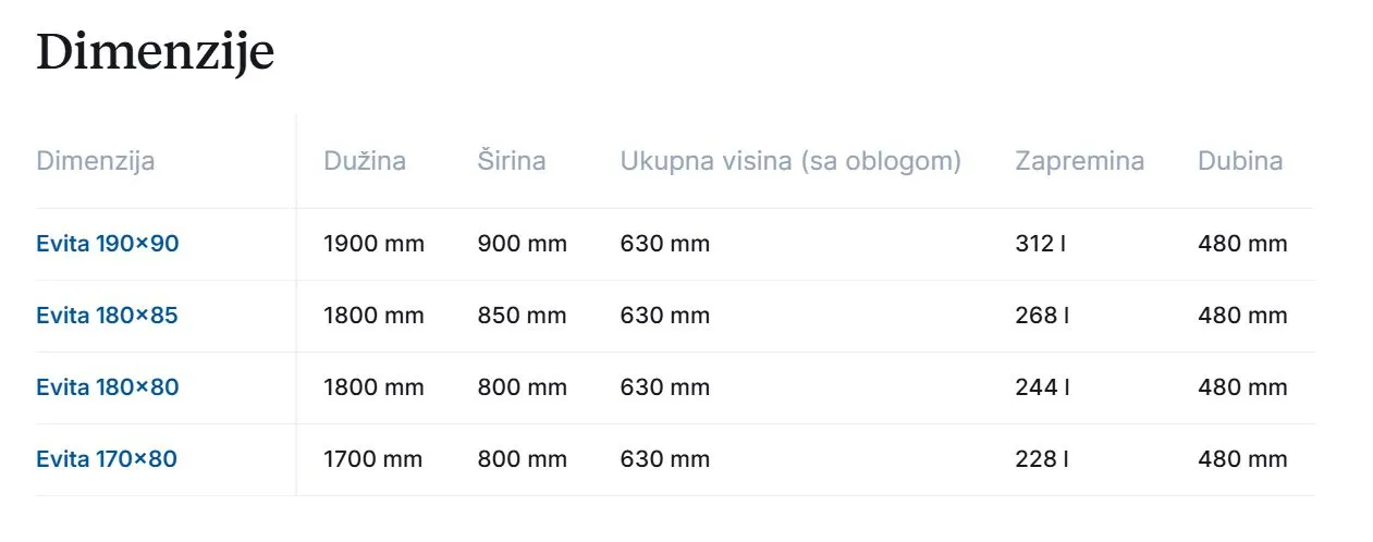 Akrilna kada Evita, može da se ugradi ili postavi sa oblogama i konstrukcijom