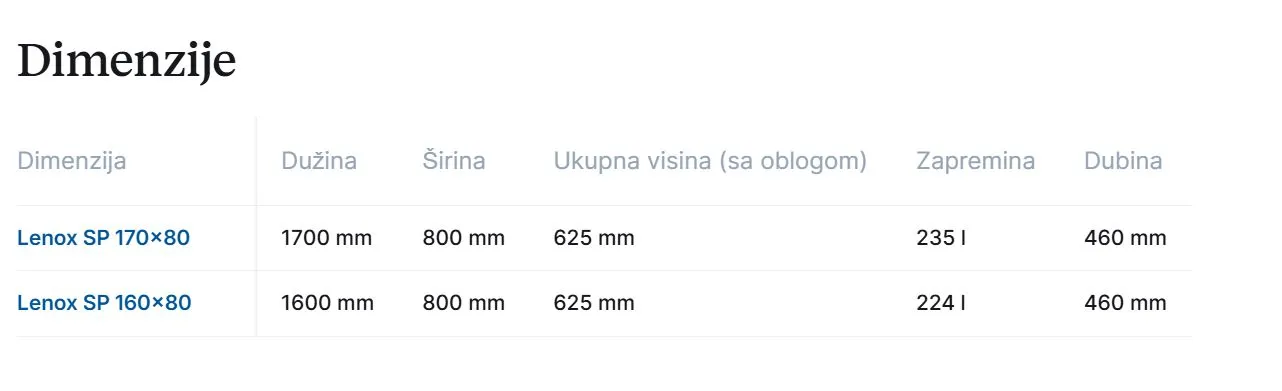 Lenox SP (kada i obloga u jednom delu) omogućava centralnu, levu ili desnu postavku uz zid, zbog čega je kada pogodna za moderne kupatila gde se prožimaju funkcionalnost i estetska dovršenost.