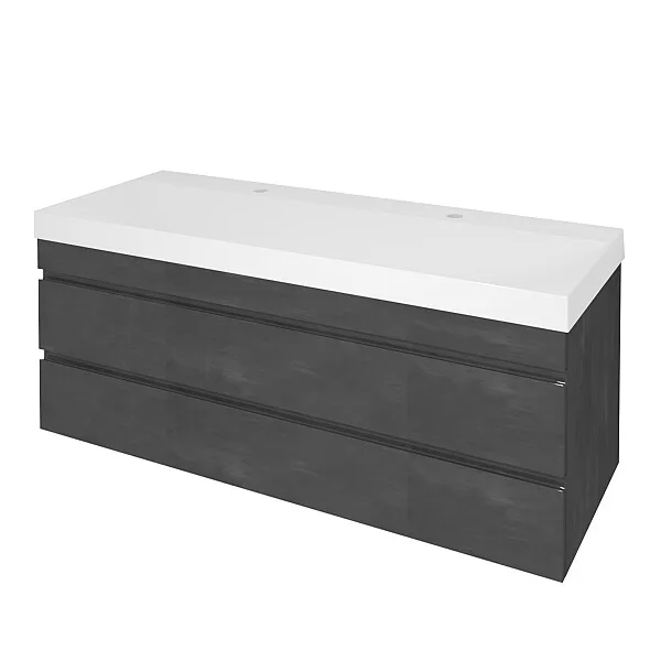 Kolpa San Lavabo sa ormarićem NAOMI OUN 120 DC – Fabricka šifra: 546050 je elegantno i funkcionalno rešenje za moderno kupatilo. Ormaric je izraden od visokokvalitetnog MDF obložen zaštitnom 3D folijom / Oplemenjena Iverica, laminiranog zaštitnom folijom. Boja: Dark Concrete (DC), sa unikatnom završnom obradom. Ugradnja: Moderan dizajn, oštre ivice, Lavabo od livenog mermera, sifon, ormarić sa fiokama, otporan na vlagu, dimenzije za svaki prostor, mogućnost modularnog dizajna – jednostavna montaža na zid. Širina ormarica je 120 cm. Proizvedeno u Slovenija, Srbiji, Proizvodac Kolpa San, serija Naomi.