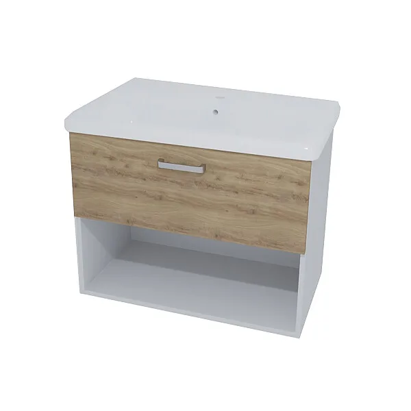 Ugradni keramički lavabo sa ormarićem sa fiokom i slobodnim delom za odlaganje, tiho zatvaranje