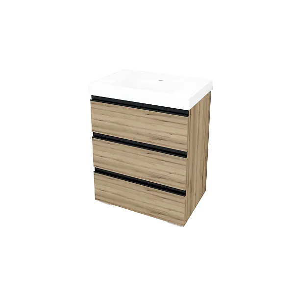 Dizajnerski lavabo od livenog mermera sa prostorom za odlaganje sa stojećim ormarićem sa tri metalne fioke, tiho zatvaranje