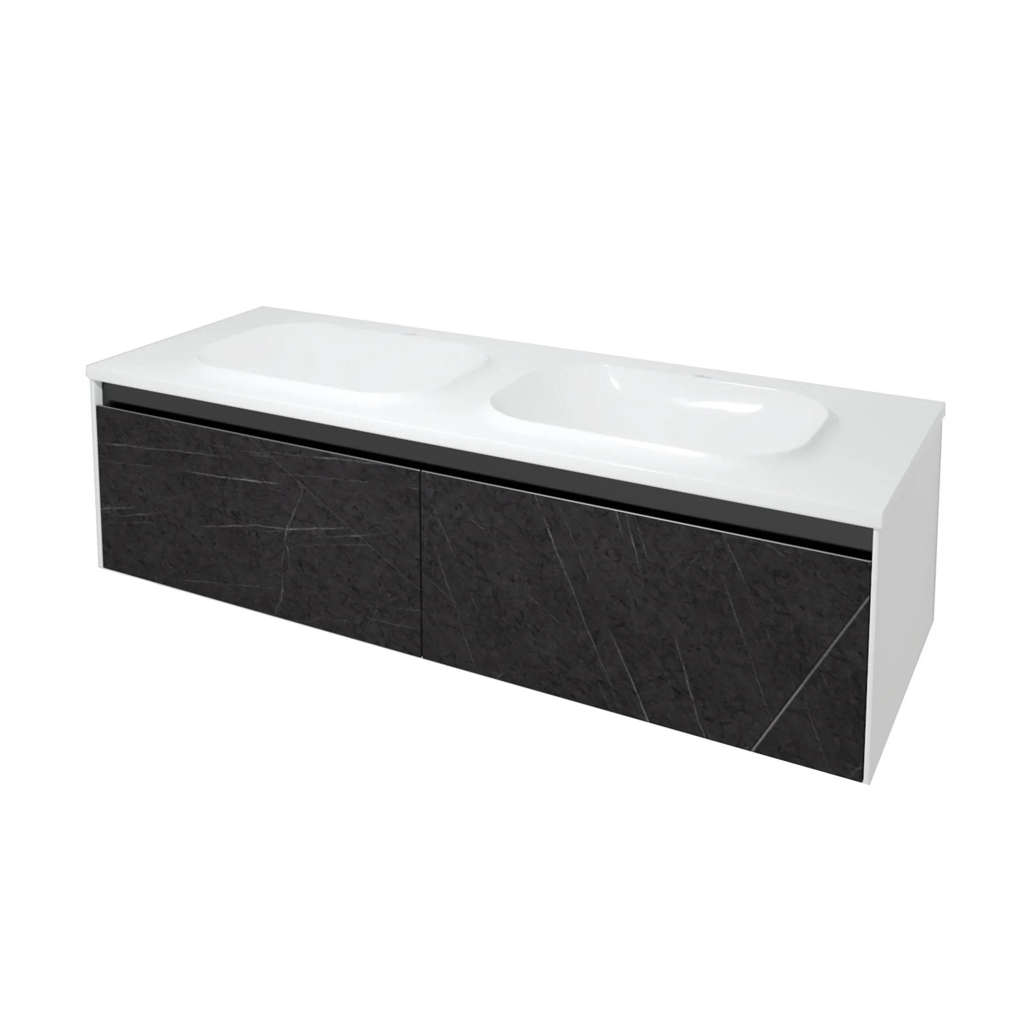 Dupli Lavabo od livenog mermera sa ormarićem sa metalnom fiokom sa tankim zidovima, tihim zatvaranjem i metalnim ručkama