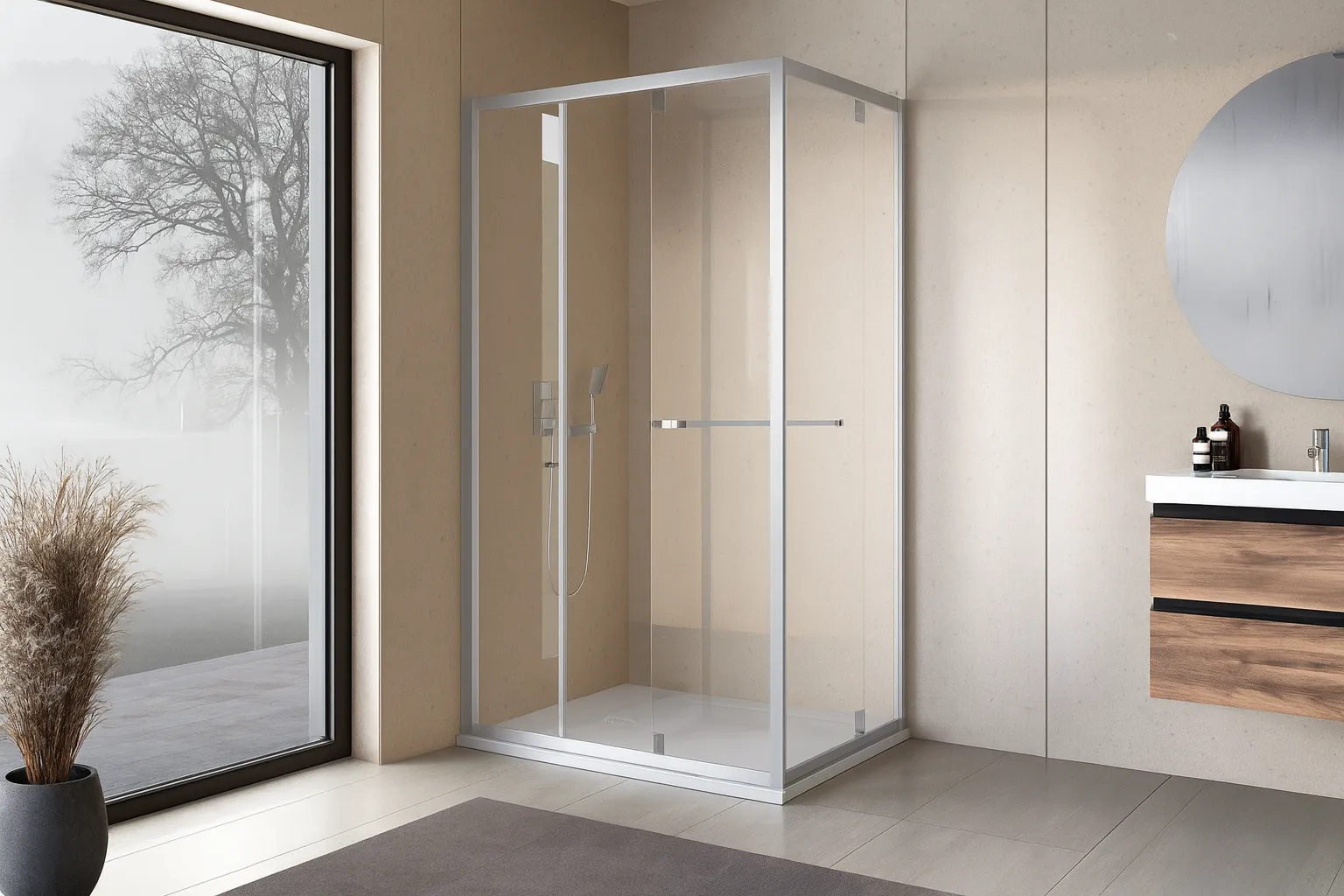 Klizna rotirajuća vrata sa širokim ulaznim prostorom, Stabilna konstrukcija modernog izgleda. Uklonjiva krila vrata omogućavaju lakše čišćenje tuš kabina. H 200cm