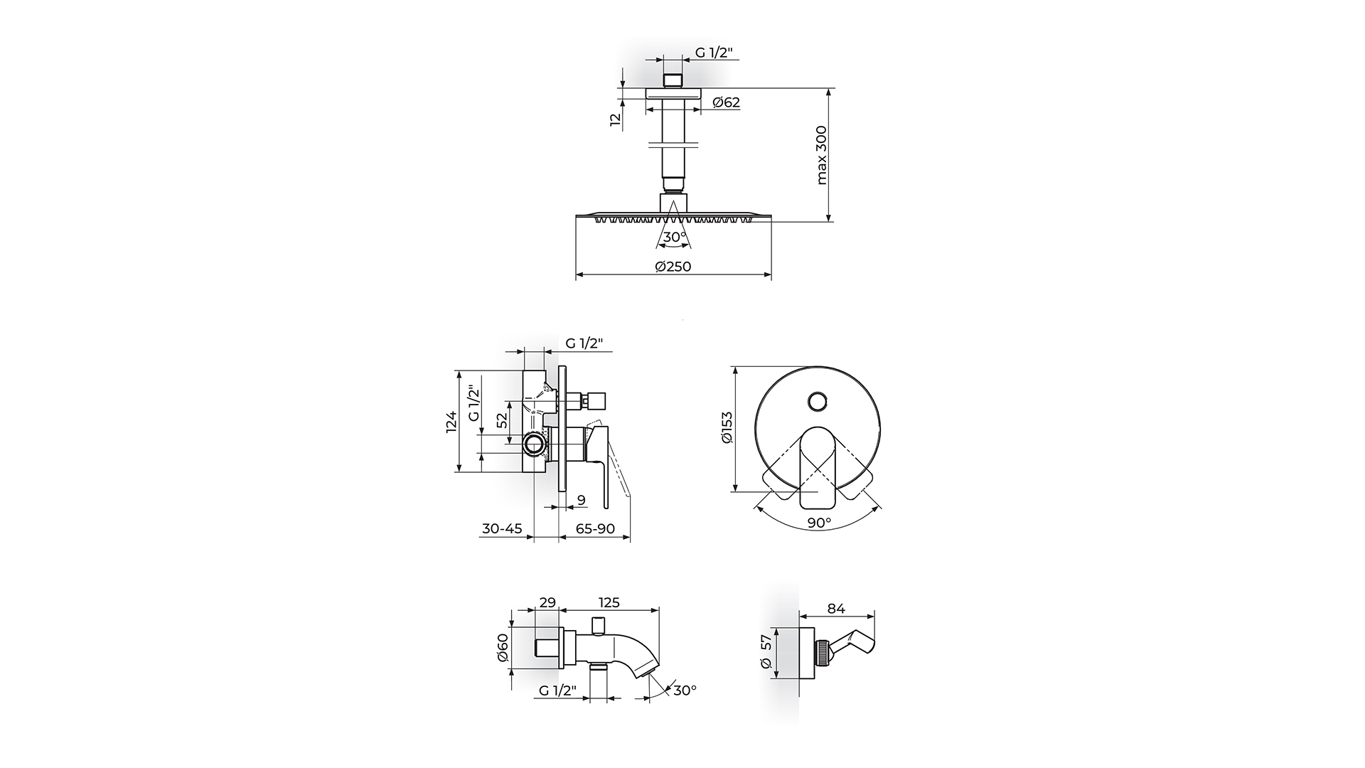Rosan S2 Gold Uzidna baterija sa izlivom, plafonskim tušem D.250 – Fabricka šifra: 231703G1 – S2 Gold Slavine za Tuš Kabinu kombinuju pouzdanost, precizan dizajn i vrhunsku funkcionalnost, prilagodene modernim kupatilima i kuhinjama.
