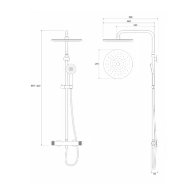 Termostatska baterija COPEN sa usponskim tušem mat crna