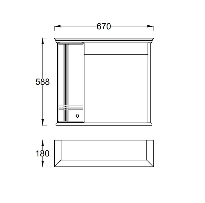 Toaletno Ogledalo Pikolo – Fabricka šifra: 0002 – Kupatilsko ogledalo sa ormarićem od medijapana vrata na šarke i svetlo sa prekidačem