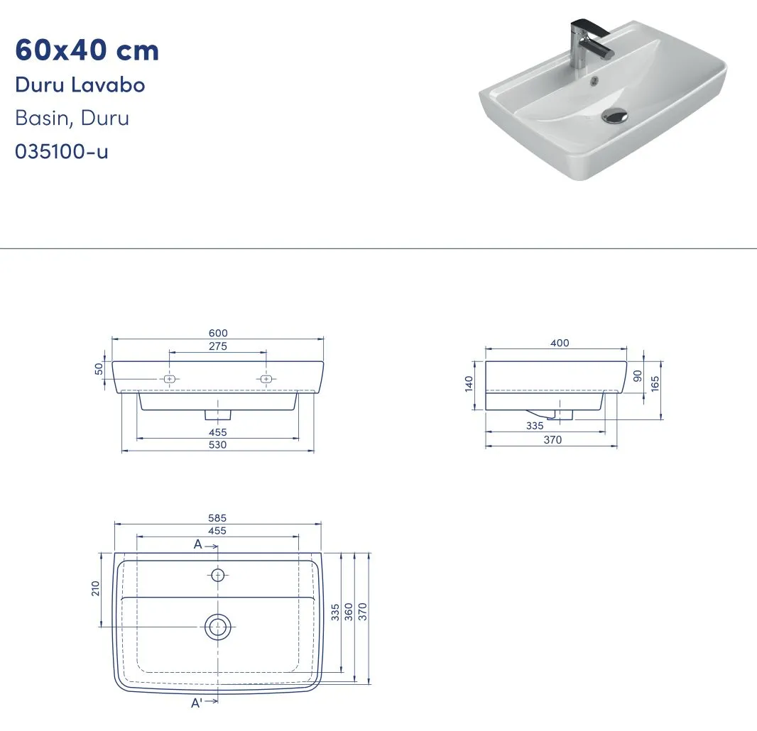 Turkuaz CeraStyle Duru Lavabo 60 35100 u