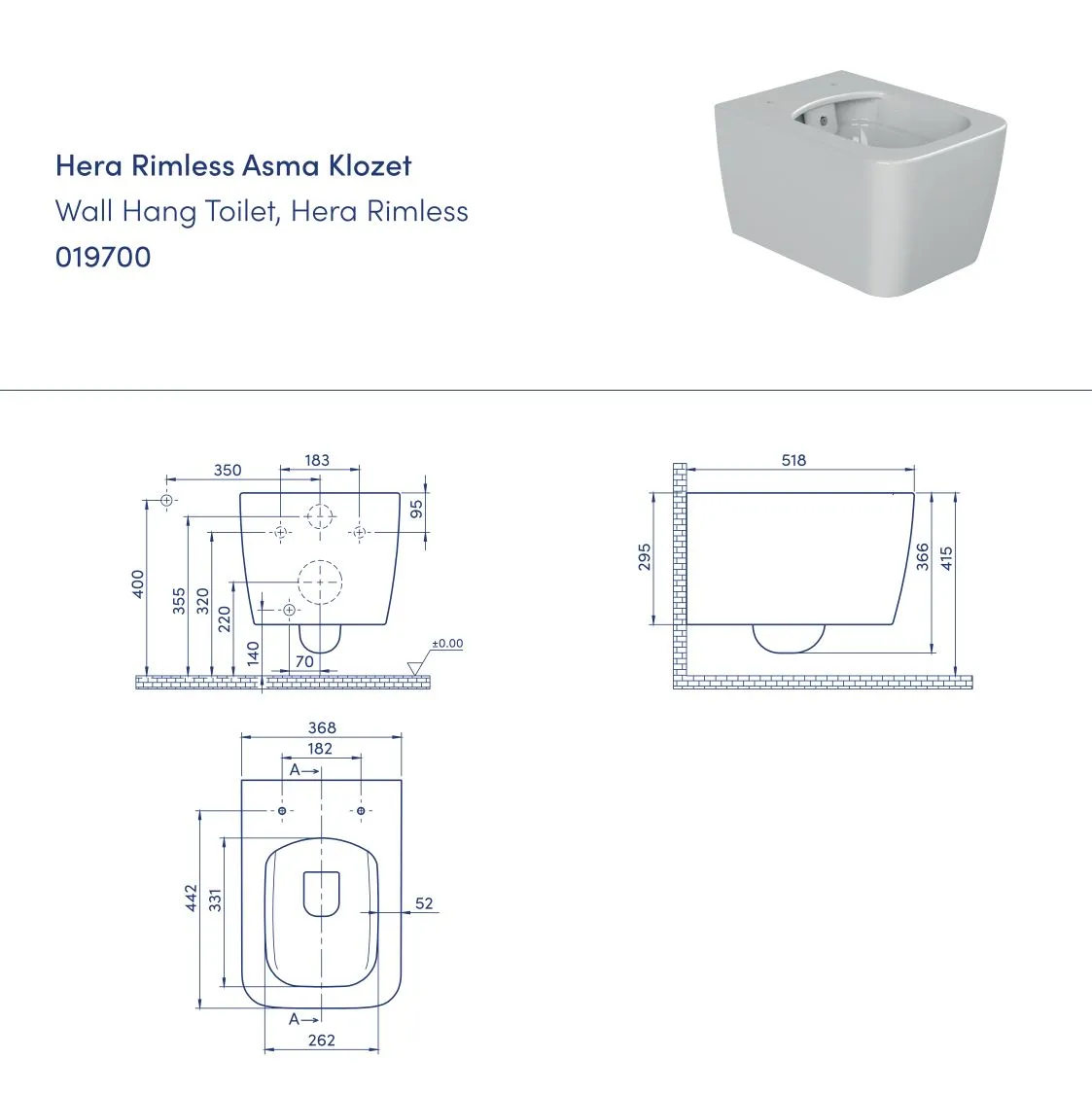 Turkuaz CeraStyle Hera Konzolna WC Šolja Rimles 19700 W