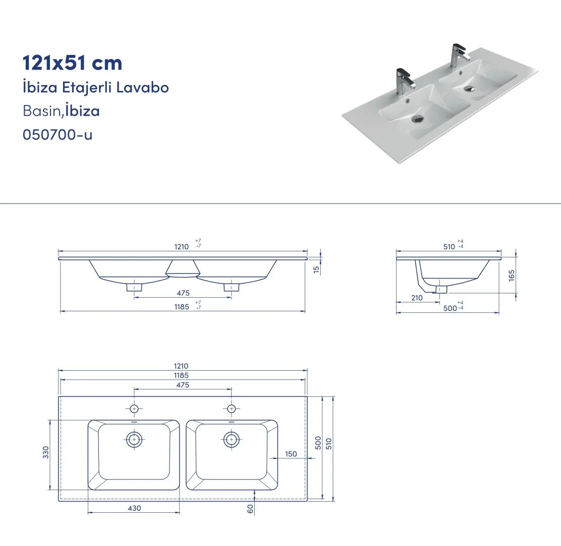 Turkuaz CeraStyle Ibiza Lavabo 121 2 Rupe 50700 U