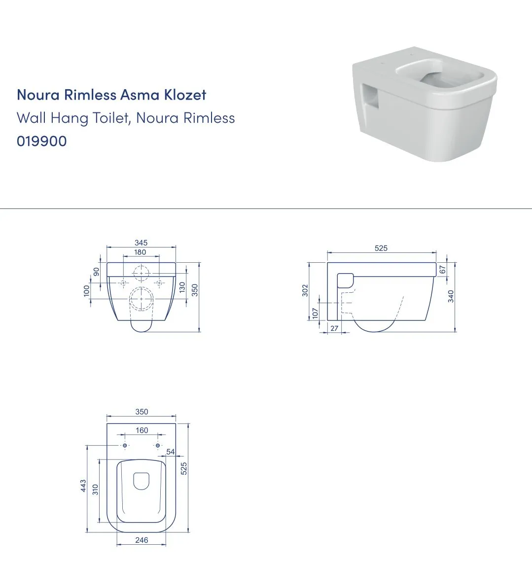Keramički element iz serije Noura, moderan dizajn i kvalitetna izrada. WC Daska se poručuje odvojeno.