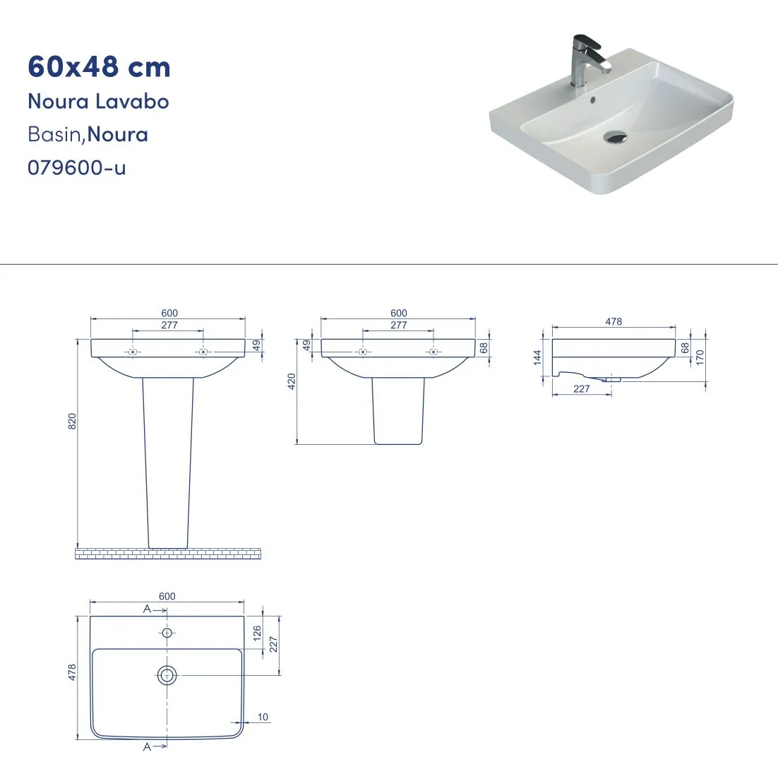 Turkuaz CeraStyle Noura Lavabo 60×48 79600 U predstavlja kvalitetan proizvod iz serije Noura. Odlikuje ga savremeni dizajn, laka održivost i pouzdana izrada. Model Noura Lavabo 60×48 79600 U idealan je za moderno kupatilo i lako se uklapa u različite stilove uređenja.