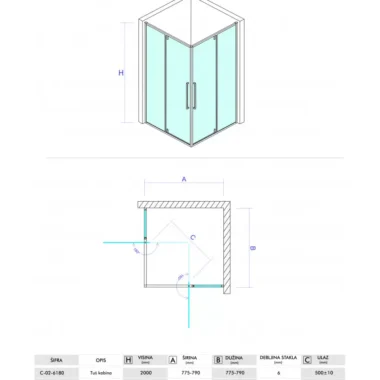 COPEN ABSOLUT Tuš kabina 800x800x2000 staklo 6mm providno sa pivot vratima