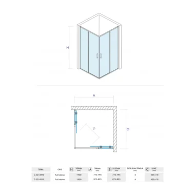 COPEN ATLAS Tuš kabina 800x800x1950 staklo 6mm providno