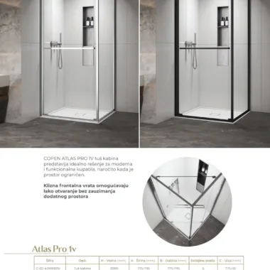 Tuš kabina Copen Atlas Pro 1V sa rotirajućim kliznim vratima koja se otvraraju na unutra, funcionalnost i elegancija uz pristupačnu cenu
