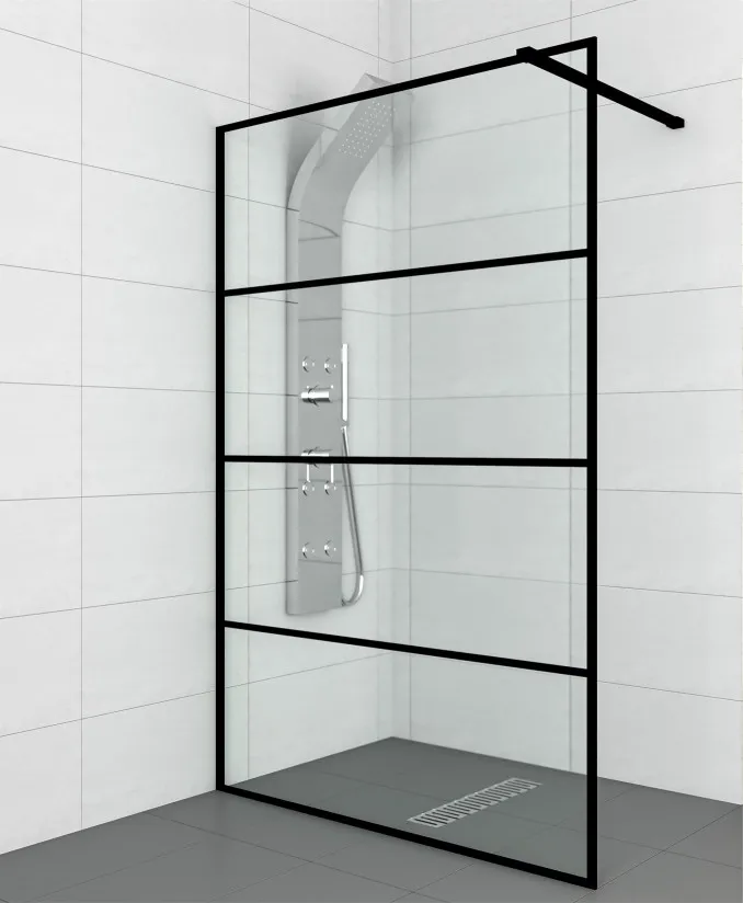 Stakleni paravan COPEN MONTE 800×2000 crni mat ram 8mm staklo. Model je izrađen od 8 mm kaljenog sigurnosnog stakla i stabilnog aluminijumskog rama, otporan je na vlagu i koroziju, a površina stakla je tretirana protiv kamenca. Mat crni ram stvara snažan kontrast i moderan efekat u kupatilu. Walk-in dizajn omogućava slobodan pristup tuš zoni, a više dostupnih dimenzija olakšava uklapanje u svaki prostor.