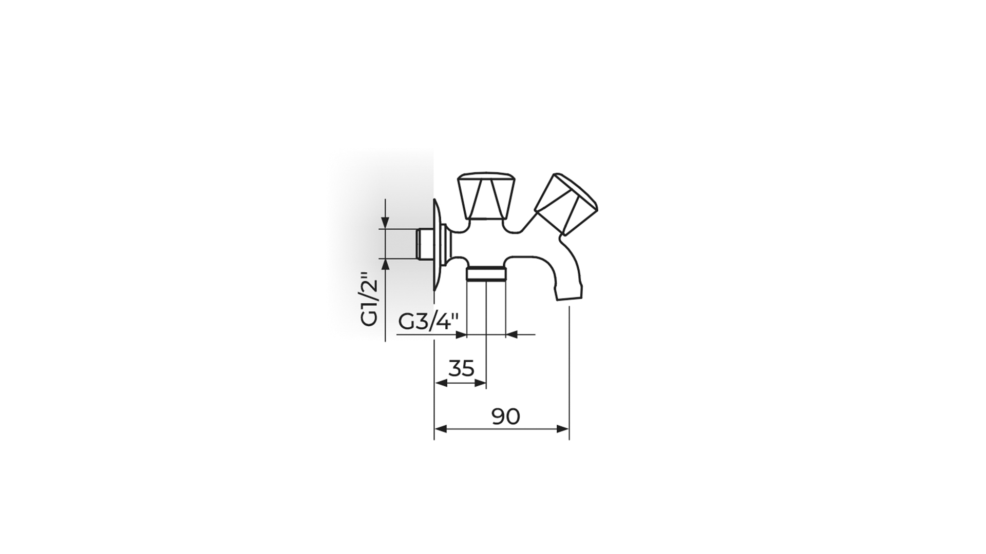 ZIDNI ventil 3/8″ g.deo – fiksni izliv i priklj. 3/4″