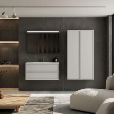 Moderan dizajn, oštre ivice, Lavabo od livenog mermera, sifon, ormarić sa fiokama, otporan na vlagu, dimenzije za svaki prostor, mogućnost modularnog dizajna