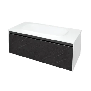 Ugradni lavabo od čvrstog i izdržljivog materijala Kerrock sa ormarićem sa fiokama, tiho zatvaranje, MDF presvučen zaštitnom folijom u dezenu, otporno na vlagu