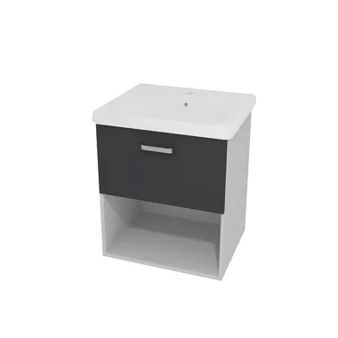 Ugradni lavabo od čvrstog i izdržljivog materijala Kerrock sa ormarićem sa fiokama, tiho zatvaranje, MDF presvučen zaštitnom folijom u dezenu, otporno na vlagu