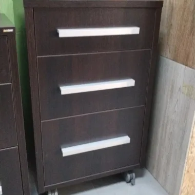Prednja strana MDF furnirani u boji masline a bočna straa MDF lakiran u belo visoki sjaj.